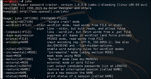 John یک نسخه خط فرمان از رابط کاربری گرافیکی Johnny است. برای آغاز کردن آن باید ترمینال را باز کرده و دستور john را تایپ کنید.
