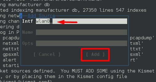 گام ششم: در این مثال، منبع وایرلس، wlan0 نام دارد. این کارت باید در بخش Inft نوشته شده باشد. روی Add کلیک کنید.