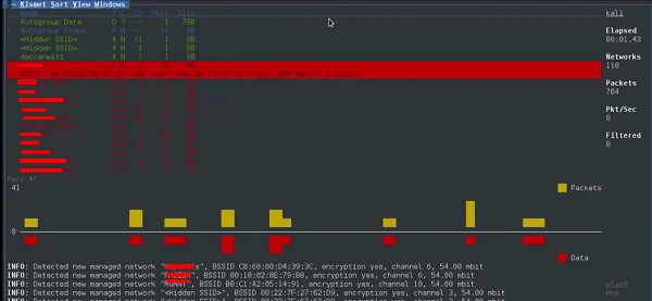 Kismet یک ابزار آنالیز شبکه وایفای است. این ابزار یک دتکتور شبکه وایرلس لایه دو 802.11 است که وظایف شنود و تشخیص نفوذ را نیز انجام میدهد. این ابزار روی هر کارت شبکه بیسیم کار میکند و هر حالت مانیتورینگ خام (rfmon) پشتیبانی کرده و ترافیک 802.11a/b/g/n را شنود میکند. ابزار Kismet با گردآوری بستهها و همچنین شبکههای پنهان، شبکههای مختلف را شناسایی میکند.