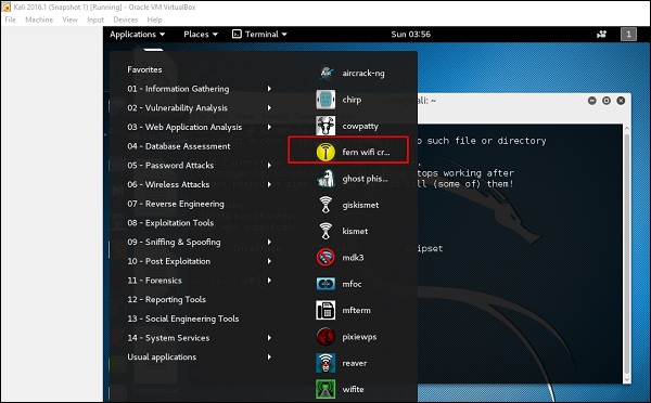 اکنون ابزار Fern Wifi Cracker را باز کنید.