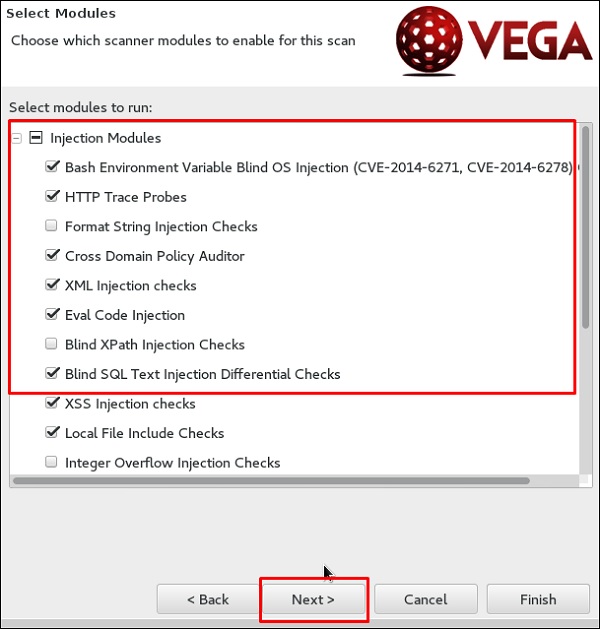 گام پنجم: تیک همه گزینههای ماژولهایی که میخواهید کنترل شوند را بزنید. سپس روی Next کلیک کنید.