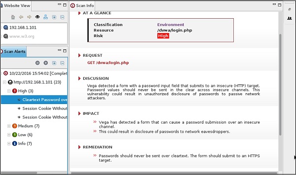 Vega یک اسکنر رایگان و متن-باز و پلتفرم تست برای بررسی امنیت وباپلیکیشنها است. Vega میتواند به شناسایی و اعتبارسنجی تزریق SQL، اسکریپتنویسی بین سایتی (XSS)، اطلاعات حساس افشا شده ناخواسته و دیگر آسیبپذیریها کمک کند. این ابزار به زبان جاوا نوشته شده است، مبتنی بر GUI است و روی لینوکس، OS X و ویندوز اجرا میشود.