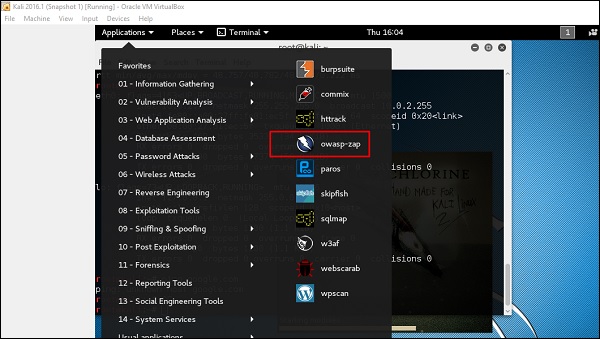 گام اول: برای باز کردن ZapProxy به مسیر اپلیکیشنها رفته و روی 03-Web Application Analysis و سپس owaspzap کلیک کنید.