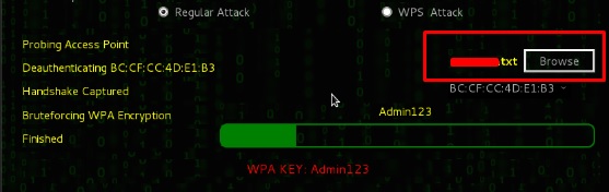 گام ششم: روی Browse کلیک کنید تا «فهرست کلمات» (wordlist) مورد نیاز برای حمله را مشاهده کنید.