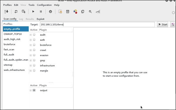 گام چهارم: URL صفحه وبی که قرار است اسکن شود را وارد کنید. در این مورد ما از یک دستگاه metasploitable استفاده میکنیم. روی Next کلیک کنید.
