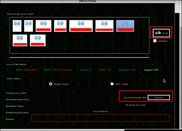 گام هفتم: روی Wifi Attack کلیک کنید.