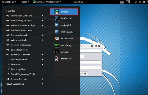 گام اول: برای باز کردن sqlmap به بخش اپلیکیشنها بروید و روی 04-Database Assessment و سپس sqlmap کلیک کنید.