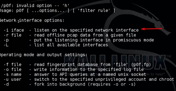 در ادامه دستور را وارد کنید که پارامتر i- نام اینترفیس نمایش یافته فوق است. پارامتر p- به معنی حالت promiscuous است و o- موجب میشود که خروجی در یک فایل ذخیره شود.