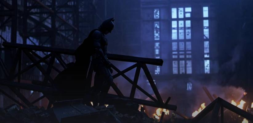 این نما از بتمن که بر فراز ویرانهای ایستاده است و برای مرگ ریچل داوس سوگواری میکند، یکی از معرفترین نماهای سهگانهی شوالیهی تاریکی است.