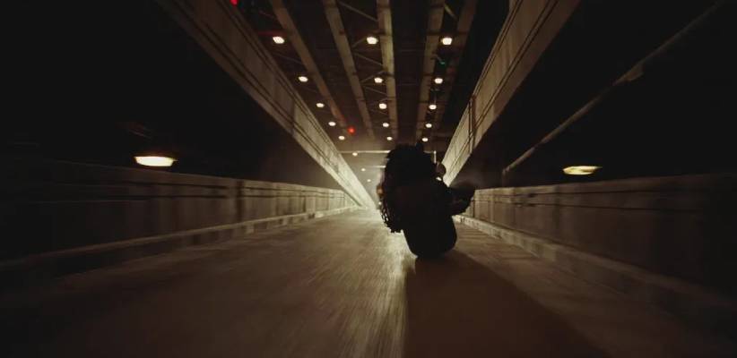 دوربین نولان و فیستر موتورسیکلت بتمن را که با سرعت باورنکردنی در حال خروج از تونلی تاریک و وارد شدن به نور است، دنبال میکند.