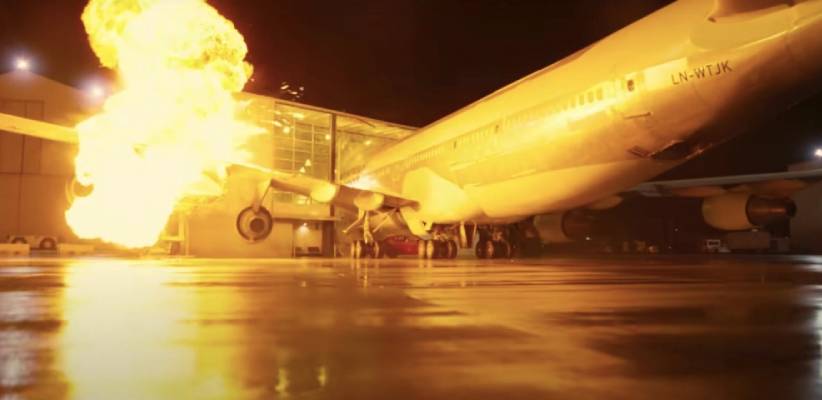 فیلمنامه شامل سکانس سرقتی بود که درون یک هواپیمای بوئینگ ۷۴۷ در حال برخورد با ساختمان فرودگاه به وقوع میپیوست، پس طبیعتا نولان و تیمش یک بوئینگ ۷۴۷ واقعی را خریداری کردند تا در طی فیلمبرداری آن را منفجر کنند.