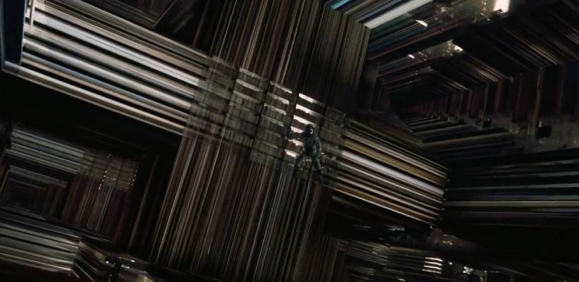 چه دوستش داشته باشید، چه از آن متنفر باشید، میانستارهای از نولان یکی از تأثیرگذارترین طراحیهای هنری کارگردانی را تحویل سینما میدهد؛ هنگامی که کوپر وارد سیاهچاله میشود و فضا شکننده و تکرارشونده.