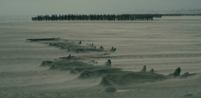 دلیلی وجود دارد که برادران وارنر نخستین تریلر خود برای دانکرک را با این نما از گروهی از سربازها که سرخود را پوشاندهاند و جایی برای پناه بردن ندارد به پایان رساند.
