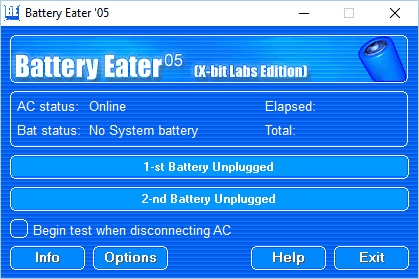 برای تست سلامت باتری لپ تاپ میتوانید از برنامه رایگان Battery Eater استفاده کنید. نیازی به نصب این برنامه نیست و نسخه قابل حمل دارد. در این برنامه نموداری از عملکرد باتری وجود دارد. علاوه بر این، میتوانید برای باتری خود چهار حالت مختلف مصرف انتخاب کنید. همچنین میتوانید اطلاعات ابتدایی سیستم خود را مشاهده کنید. این برنامه مناسب کاربرانی است که حال و حوصله استفاده از نرمافزارهای پیچیده را ندارند.