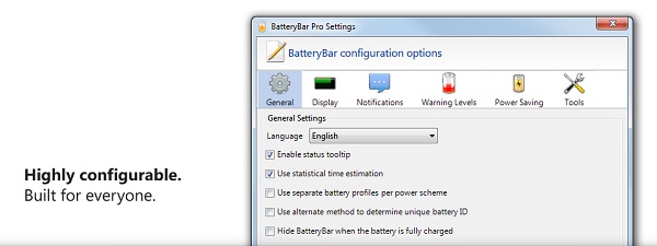 برنامه سلامت باتری لپ تاپ BatteryBar گزینه مناسب دیگری برای مشاهده وضعیت باتری است. این برنامه حجم بسیار کمی دارد. این برنامه میزان باقی مانده شارژ باتری شما را طبق عملکردهای قبلی تخمین میزند. امکان فعال کردن حالت صرفهجویی هم وجود دارد و برنامه با توجه به عملکرد باتری آن را فعال خواهد کرد. چرخه شارژ باتری نیز با نمودار نمایش داده میشود.