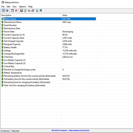 نرم افزار عیب یابی باتری لپ تاپ BatteryInfoView
