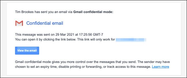 زمانی که با استفاده از حالت محرمانه درون جیمیل برای فردی پیام میفرستید، این کاربر برای خواندن آن باید یک کد وارد کند.