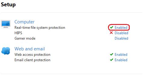 در بخش Computer در مقابل عبارت Real-time file system protection روی گزینه Enable کلیک کنید.