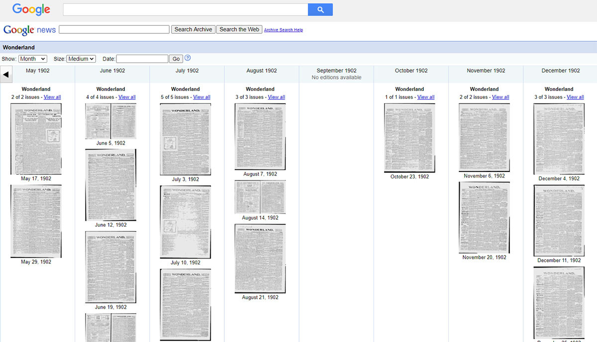 قسمت مربوط به اخبار در گوگل از بخشهای بسیار شگفتانگیز آن محسوب میشود. شما در قسمت مربوط به روزنامهها در گوگل نیوز، به آرشیو بزرگی از روزنامهها دسترسی خواهید داشت که قدمت برخی از آنها صدها سال است. توجه کنید که بیشتر این نشریات آمریکایی هستند. گوگل ممکن است تنها آرشیوکنندهی روزنامه نباشد، ولی به لطف فناوری استفاده شده در تشخیص کاراکترهای متن، جستوجو را برای کاربران سادهتر کرده است. برای مثال با جستوجوی "deaths 1862" به نتایج محدود شده به مرگهای سال ۱۸۶۲ در این روزنامهها دست خواهید یافت. برای دسترسی به این امکانات شگفتانگیز به آدرس https://news.google.com/newspapers بروید.