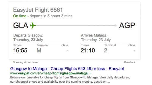 همانطور که گفته شد مسافران یکی از گروههای مهم کاربران موتور جستوجوگر گوگل هستند و گوگل برای آنها امکانات متعددی درنظر گرفته است. اگر شماره پرواز خاصی را جستوجو یا عبارت سادهی "airline X to Y" را برای جستوجو وارد کنید (X نام مبدا و Y نام مقصد پرواز) گوگل اطلاعات زمان پرواز، زمان رسیدن به مقصد و ترمینال مربوط به آن پرواز را دراختیار شما قرار خواهد داد. برای بررسی شرایط جوی محل موردنظر خود تنها باید عبارت "X weather" را جستوجو کنید (X نام محل موردنظر). دما، پیشبینی وضع هوا و سرعت باد در هفت روز آینده نتیجهی جستوجوی شما در گوگل خواهد بود. این جستوجو هم به فارسی اکنون نتایج دقیقی را ارائه میکند.