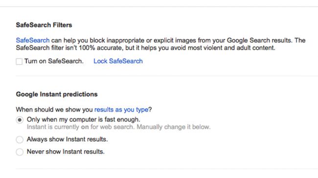 گوگل امکان سفارشیسازی برخی از تنظیمات را به کاربران میدهد. در قسمت تنظیمات که با آیکون چرخدهنده نشان داده شده است، میتوان طیف وسیعی از شخصیسازیها را برای جستوجوی خود اعمال کرد. برای مثال شما میتوانید تعداد نتایج نمایش داده شده در هر صفحه، نحوهی بازشدن هر یک از نتایج، تنظیمات SafeSearch و بسیاری از موارد دیگر را تغییر دهید.