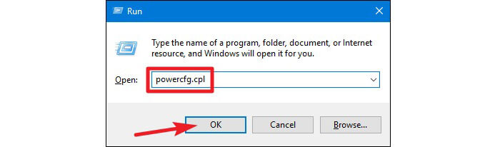 پس از آن که تصمیم خود را گرفتید، میتوانید گزینه موردنظرتان را برای صدور فرمان، انتخاب کنید. در ویندوز ۷ الی ۱۰، کلیدهای ترکیبی Windows + R را فشار دهید و پس از تایپ عبارت powercfg.cpl در پنجرهی Run کلید Enter را بزنید.