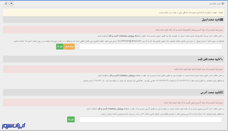 در این مرحله شما باید ایمیل، تلفن و آدرس کسب و کارتان را تایید کنید. کار چندان سختی نیست و تنها نیاز به تایید دارد. اما اگر اطلاعات شما نیاز به تغییر داشت میتوانید با استفاده از کلید ویرایش این کار را انجام دهید.
