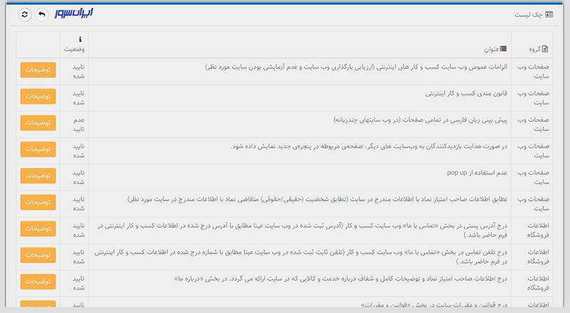 بررسی چک لیست الزامات نماد اعتماد الکترونیکی