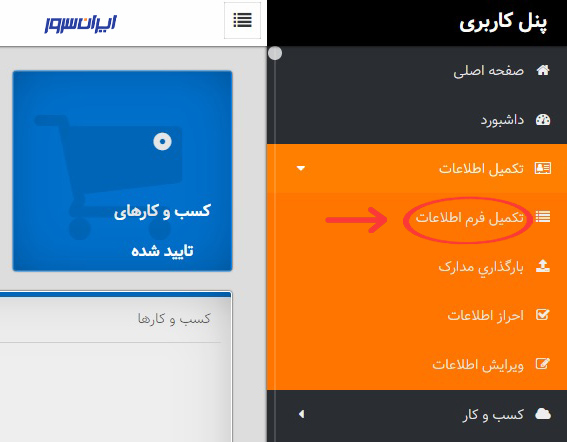 ثبتنام اولیه که تمام شد، وارد پنل کاربری خود شوید و از منوی سمت راست روی تکمیل اطلاعات کلیک کرده و از زیر منوی آن گزینه تکمیل فرم اطلاعات را انتخاب کنید.