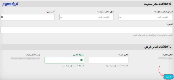 با ورود به این صفحه، مشخصات هویتی، اطلاعات محل سکونت و اطلاعات دقیق تماس فردی را به طور کامل وارد کنید. در صورتی که تمام فیلدها را به درستی وارد کرده باشید، روی کلید ذخیره در پایین صفحه کلیک کنید.