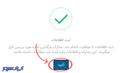در صورتی که بارگذاری هر تصویر به درستی انجام شود، مجددا پیام ثبت اطلاعات با موفقیت انجام شد به نمایش در خواهد آمد. در ادامه به صفحه اصلی برگردید و وارد مرحله احراز هویت شوید .