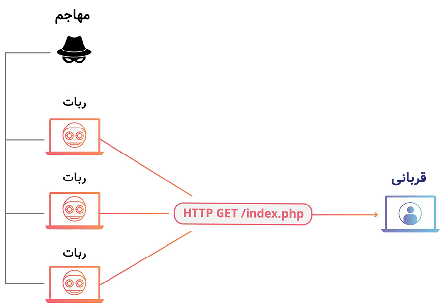 تعداد زیادی HTTP Request به سرور ارسال شده، سرور سرریز میشود و DDoS اتفاق میافتد. البته مسلما مهاجمان سایبری این کار را با دوستانشان انجام نمیدهند و ابزارهای خاصی دارند!