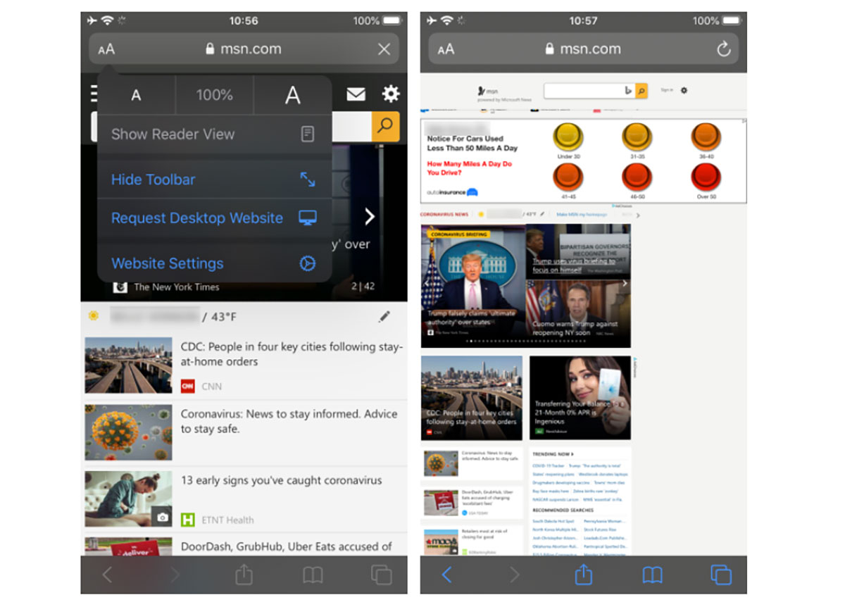 روش سادهای برای تغییر User Agent در موبایل وجود ندارد. مرورگرهای محبوب این پلتفرم یعنی کروم و سافاری هیچ گزینهای را برای تغییر عامل کاربر ارائه نمیکنند، اما حداقل میتوان نسخهی دسکتاپ هر وبسایت را در آنها درخواست کرد.