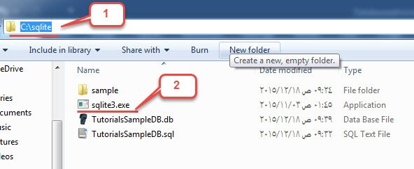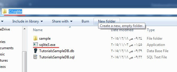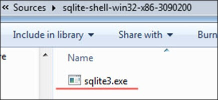 - گام 2: فایل zip فشرده را استخراج کنید. به این ترتیب مانند تصویر زیر با فایل sqlite3.exe مواجه خواهید شد.