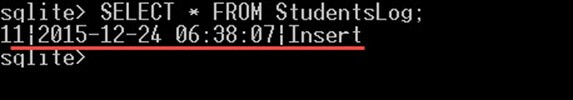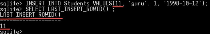 پس از درج یک دانشجوی جدید با شناسه 11 تابع ()LAST_INSERT_ROWID شناسه آخرین ردیف درج شده را که برابر با 11 است بازگشت میدهد.