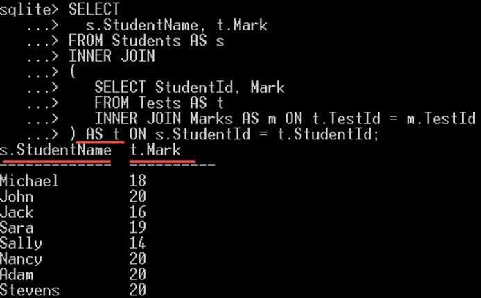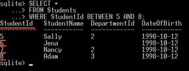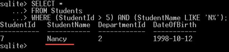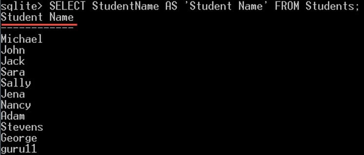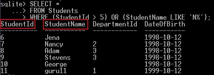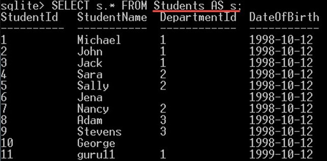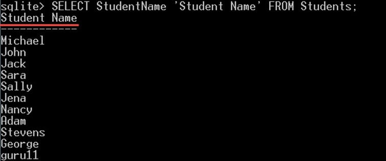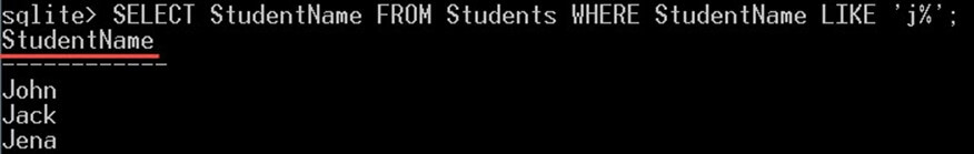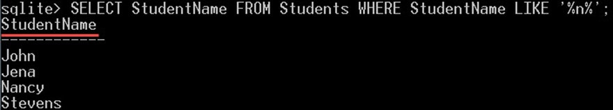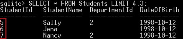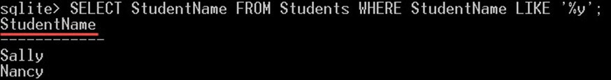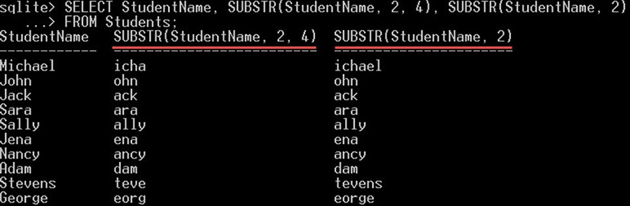 SELECT StudentName, SUBSTR(StudentName, 2, 4), SUBSTR(StudentName, 2)
