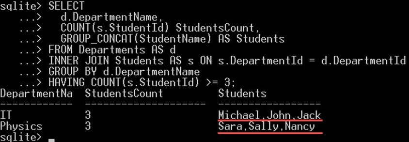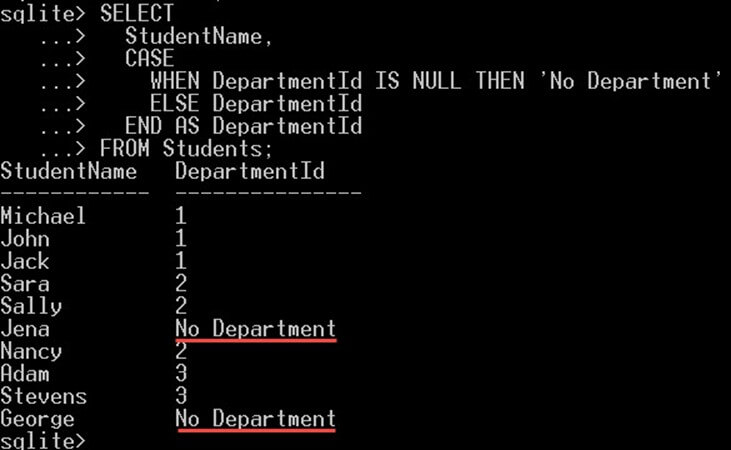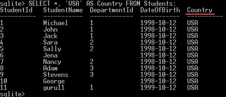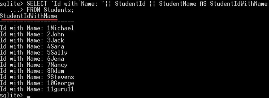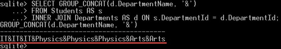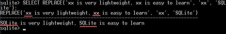 چنان که میبینید تابع replace همه رشتههای xx را با رشته SQLite عوض کرده است. به این ترتیب خروجی به صورت زیر در آمده است: