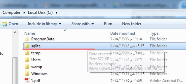 - گام 4: یک دایرکتوری جدید به نام sqlite ایجاد کنید.