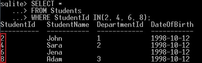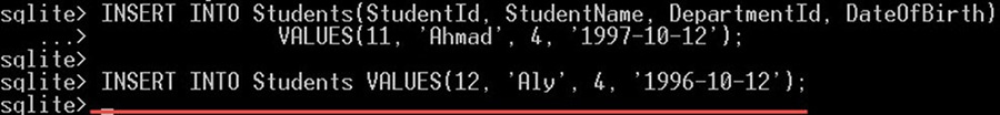INSERT INTO Students VALUES(4, 'Sara', 2, '1998-10-12');