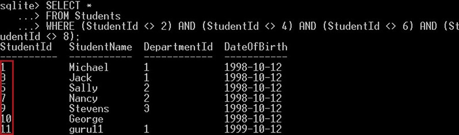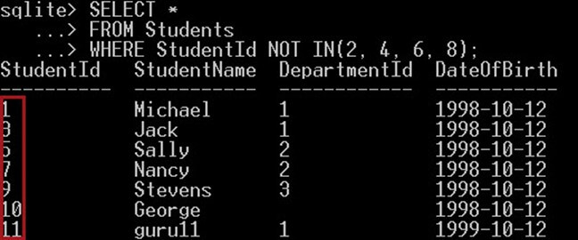 [StudentId] INTEGER PRIMARY KEY NOT NULL,