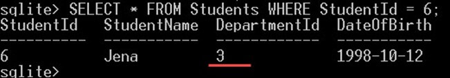 FOREIGN KEY(DepartmentId) REFERENCES Departments(DepartmentId)