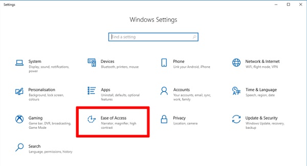 از منوی Start وارد Control Panel شوید. روی Ease of Access کلیک کنید. سپس روی Ease of Access Center کلیک کنید.
