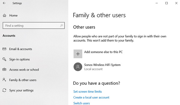 برای این کار به Settings و سپس Accounts بروید. حال وارد بخش Family and Other Users شوید. سپس روی Add Someone Else to This PC بزنید. در اینجا باید نام کاربری و مشخصات آن را وارد کنید.