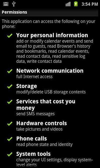 اینطور که پیدا است تقریبا اکثر اپلیکیشنها به تعداد زیادی مجوز دسترسی در بخشهای مختلف تلفن نیاز دارند. اگر توسعه دهنده اندروید باشید، گوگل تاکید دارد بخشهای مورد استفاده اپلیکیشنی که قصد توسعه آن را دارید باید به صورت واضح مشخص باشد. اما برای مثال وقتی که اپلیکیشن پیام رسان فیسبوک را بر روی دستگاه خود نصب میکنید، این برنامه اجازه دسترسی به تمام مخاطبین، پیامهای متنی که ارسال کرده اید، ویدیوهایی که با دوربین گوشی ضبط کردهاید، تمام اطلاعات محل قرارگیری شما و همچنین دسترسی به اینترنت را از شما درخواست میکند.