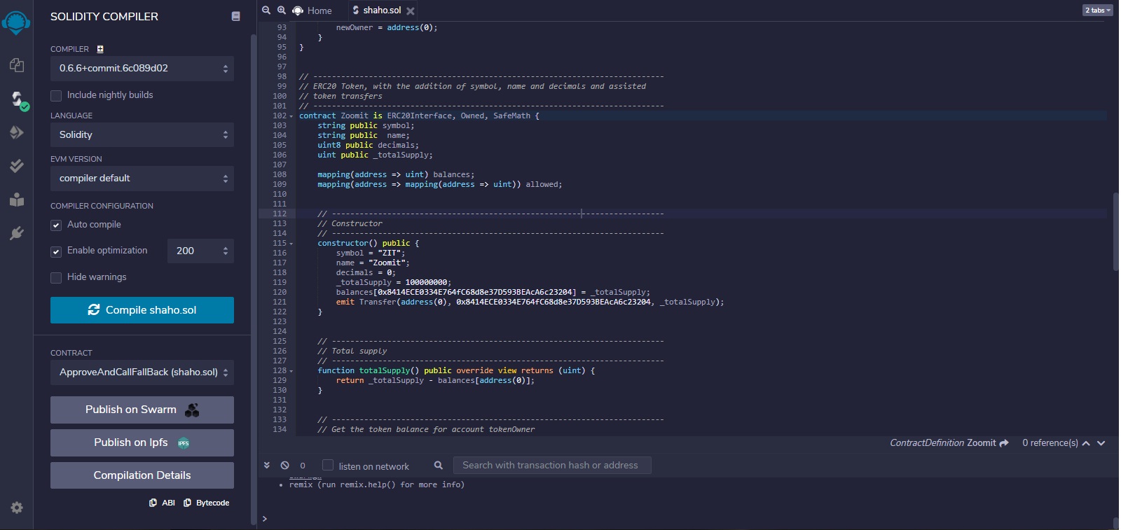 - در خطوط ۷ و ۱۱۶ (رنگ قرمز)، درمقابل عبارت Symbol، نام توکنتان را بهاختصار وارد کنید. در اینجا ZIT وارد شده است.