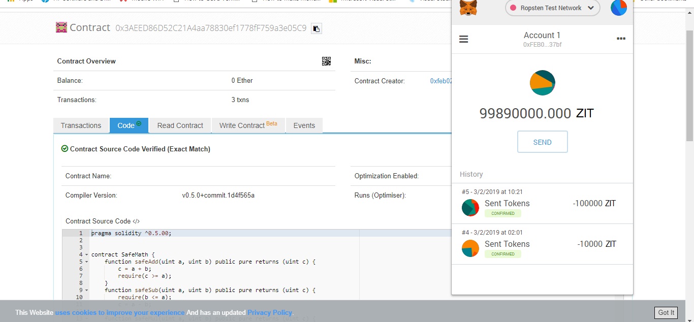 contract Zoomit is ERC20Interface, Owned, SafeMath {