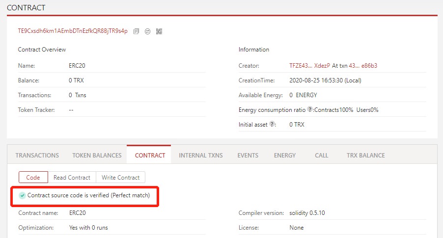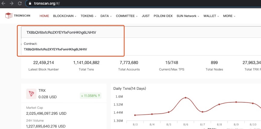 همچنین، میتوانید ازطریق وبسایت tronscan و واردکردن آدرس قرارداد، صفحه اصلی قرارداد را جستوجو کنید.