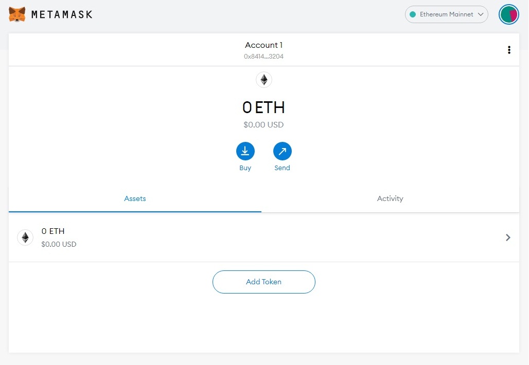 کیفپول دیجیتال متامسک (Metamask) در نقش درگاهی به اپلیکیشنهای بلاکچین عمل میکند. این والت بهعنوان افزونهای به مرورگر اضافه میشود. پیشنهاد میشود که از مرورگر گوگل کروم استفاده کنید. والت متامسک نسخه موبایل نیز دارد که پس از ایجاد توکن، میتوانید بهراحتی از آن برای انتقال و ذخیرهسازی رمزارزهای خود استفاده کنید. برای دانلود افزونه متامسک برای گوگل کروم روی این لینک کلیک کنید. پس از اتمام نصب افزونه، صفحه زیر را مشاهده میکنید. این صفحه را میتوانید از قسمت افزونههای مرورگر نیز باز کنید.