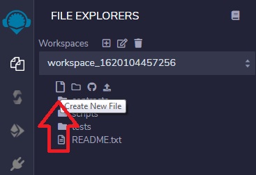 برای شروع فرایند ساخت توکن به وبسایت remix.ethereum وارد شوید و از قسمت اشارهشده در تصویر پایین، فایلی جدید ایجاد کنید.
