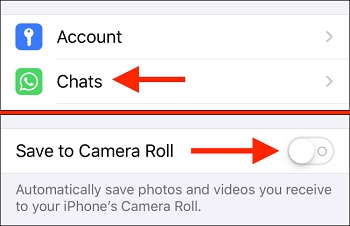 در این بخش برای سیو نشدن عکس واتساپ در گالری، علامت جلوی Save to Camera Roll را روشن کنید.